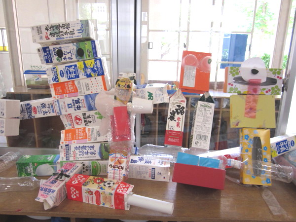 数日前から、グループやクラスで話し合い、どのようなものを作るか、どこを協力して作るか決めてきました。