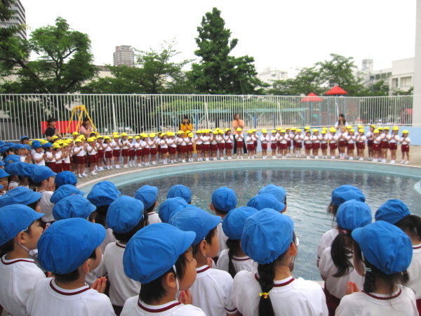 「待ちにまったみなさんの大好きなプール遊びが始まりますね。プールのお水は、冷たくって気持ちよくって、楽しいけれど、とても怖いものです。」