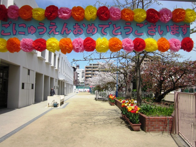門をくぐると、右手の花壇には、3月に卒園した年長組さんが