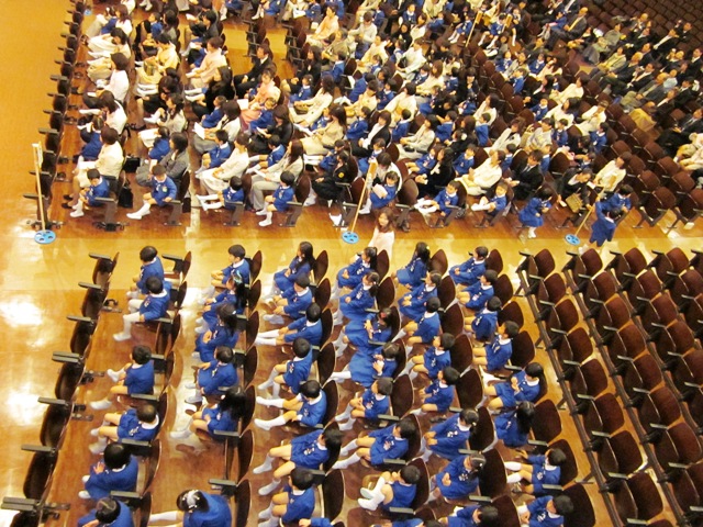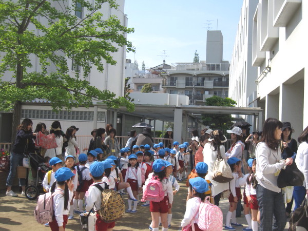 入園式は、幼稚園のグランドを挟んで、講堂が会場に