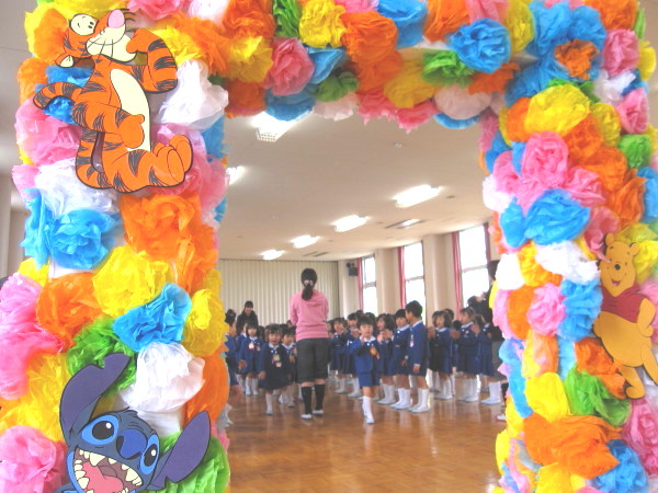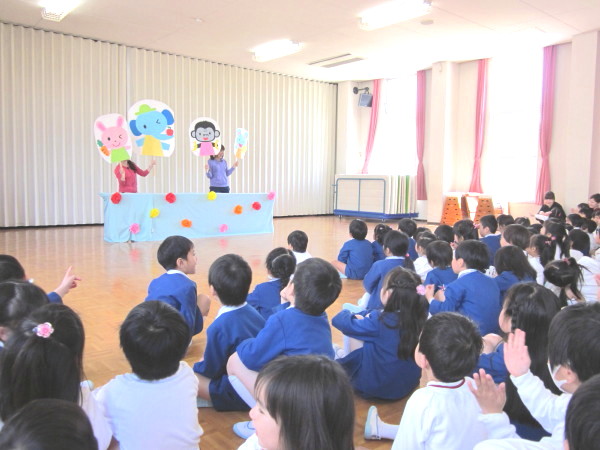 今日は、新入園児歓迎会が遊戯室で行われました。