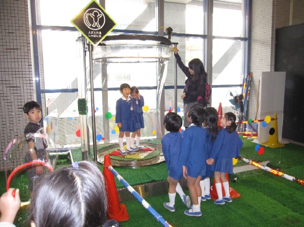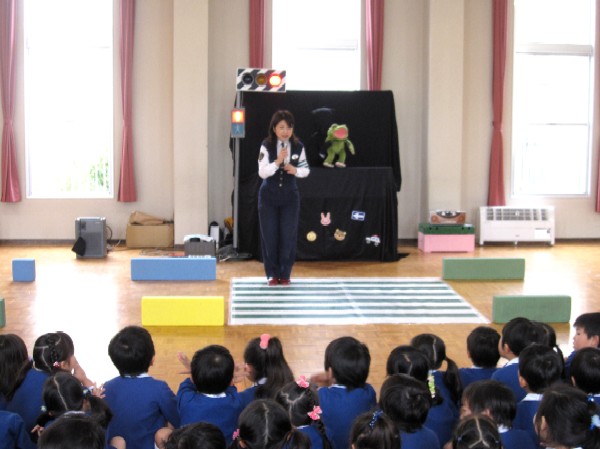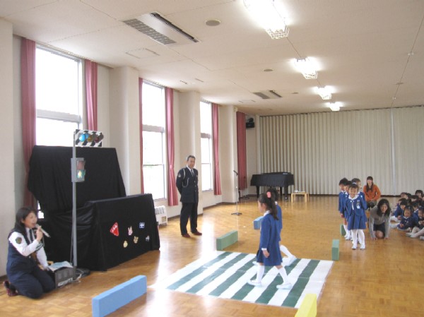 見ていた年中さんや、年少さんも一緒に信号が赤になったよ〜と、