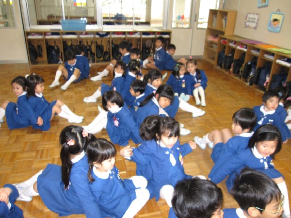 「わたし、ゆりぐみ!」 「うわ〜 いっしょ!」