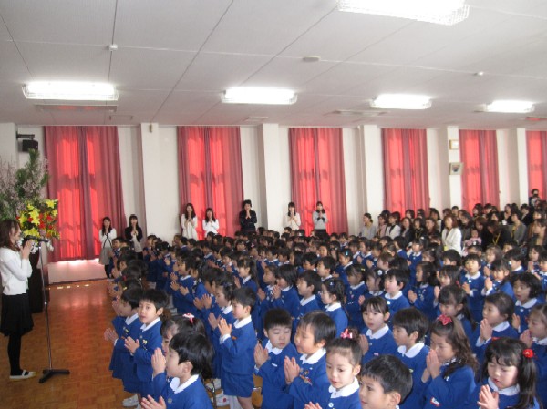 教職員一同、そして沢山の保護者や来賓の方々に見守られ