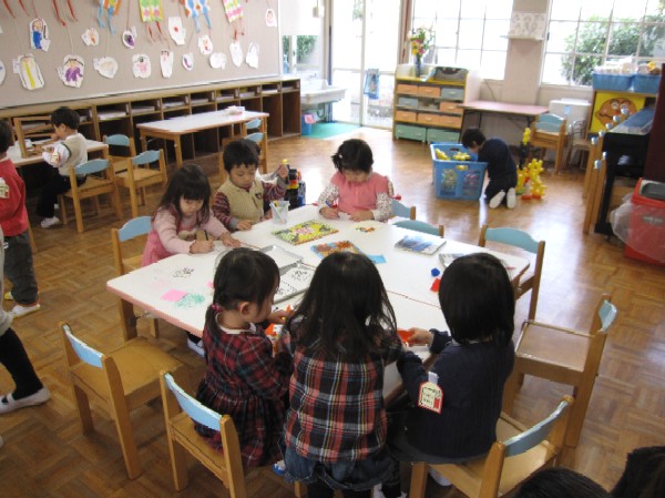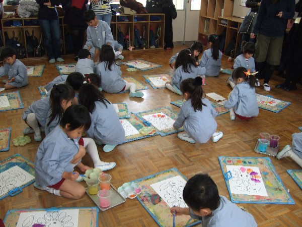 と、お友達と話をしながら思い思いに塗っていきます。