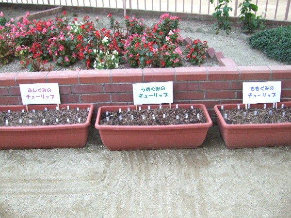 みんな、何色のチューリップが咲くのかウキウキ☆ワクワク★