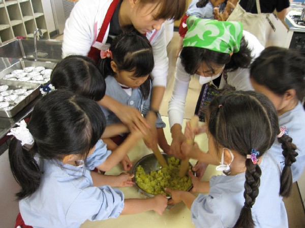 後は、煮たお芋を分けて、子どもたちを待ちます。