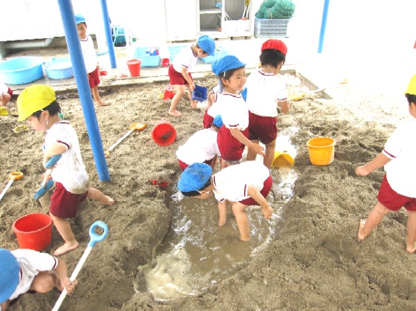 最後は、先生もみんな、びしょぬれになって水かけごっこ遊び。
