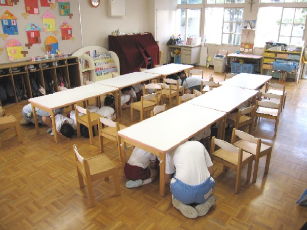 「地震がきたら、色々なものが落ちてくると危ないから机の下に