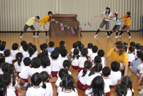 年長組になると、先生の横で一緒にポイ作りのお手伝いも