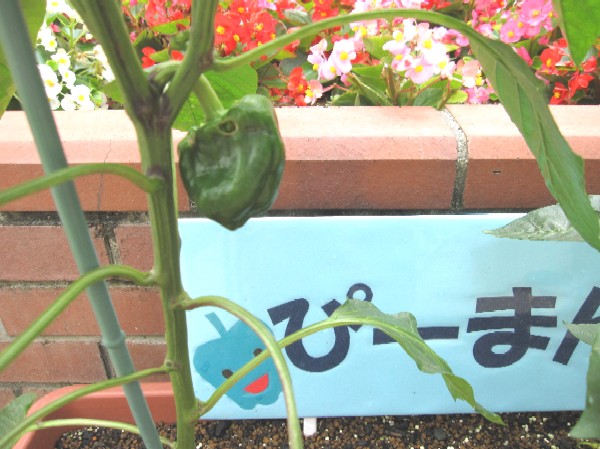 年長組のなすびにピーマンも徐々に実り、