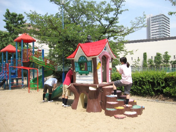 遊具に不備や故障はないか、点検しています。