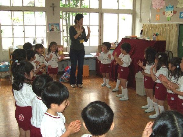 年中組になると英語のレッスンが始まります!