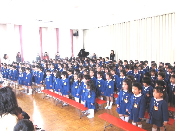 幼稚園に始めてきたときは、お母さんと離れることが出来なくて泣いていた子ども達も、今日一人一人、立派な姿で修了証書をいただき、満面の笑みを浮かべ幼稚園を巣立って行きました。