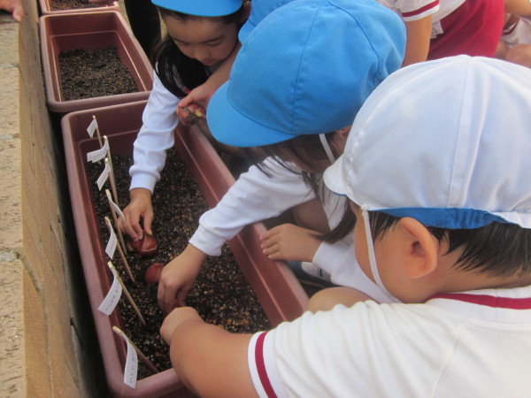 年長組の子ども達が、チューリップの球根を植えました!!