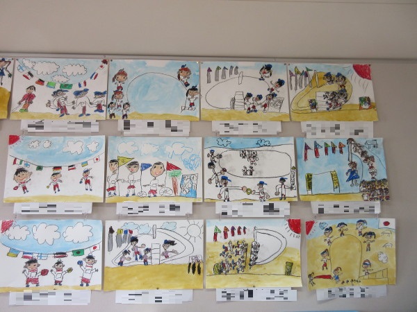みんなで力を合わせて頑張った運動会を思い返しながら、クレパスを使って伸び伸びと描きました♪