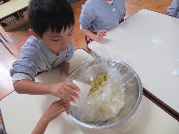 子どもたちが楽しみにしていた「芋きんとん」を作りました♪