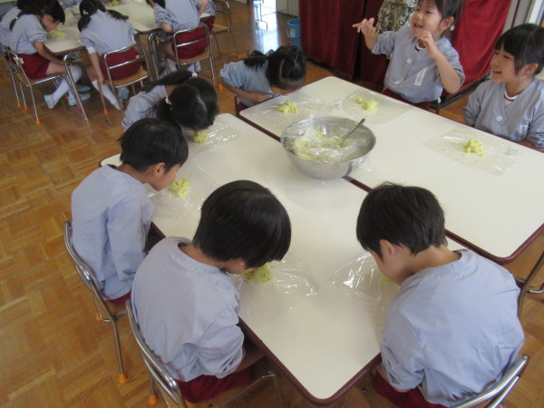 お友だちと作って食べる芋きんとんは、とってもおいしかったようで、「おかわり〜」「レシピおしえて!!」とたくさんの声が聞こえてきました☆★