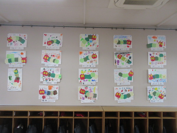 年少組では、11月壁面に「はらぺこあおむし」を制作しました☆