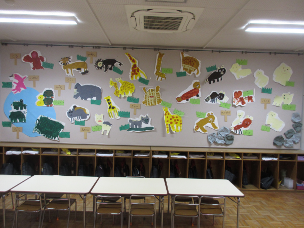年中組の11月の壁面は「動物の絵」です(^o^)丿♪♪