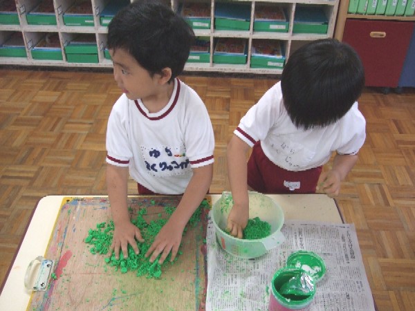トイレットペーパーに絵の具を混ぜて、こねこねこねこね☆