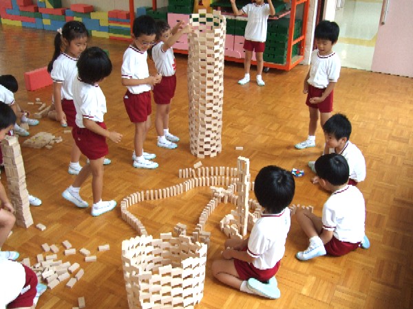 積み木は、一つずつこつこつと積み重ねたらこんなに高い塔になりビックリ!!みんなで遊ぶと、こんなこともできるんだなぁと思いました☆