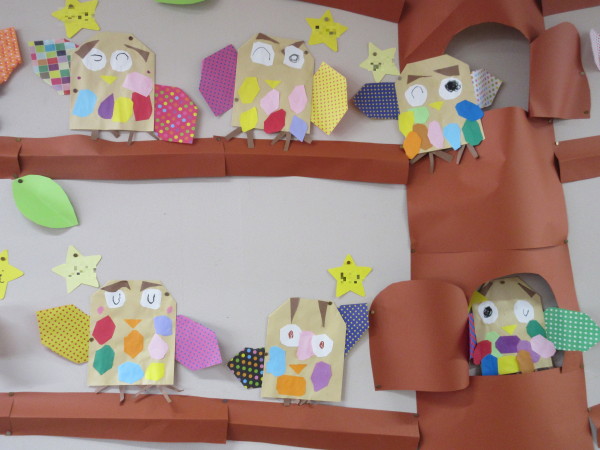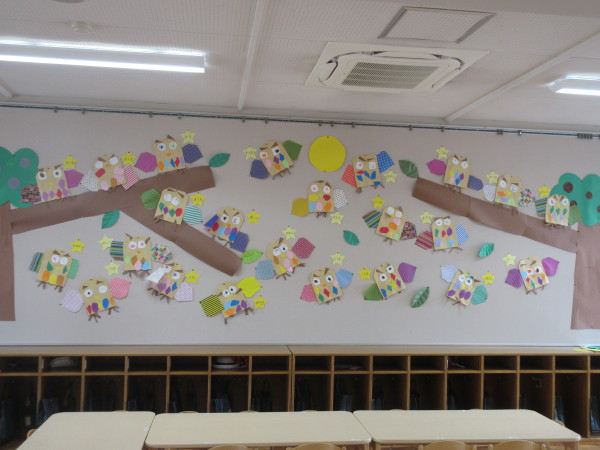 年少組では、10月の壁面に『ふくろう』を作りました!!