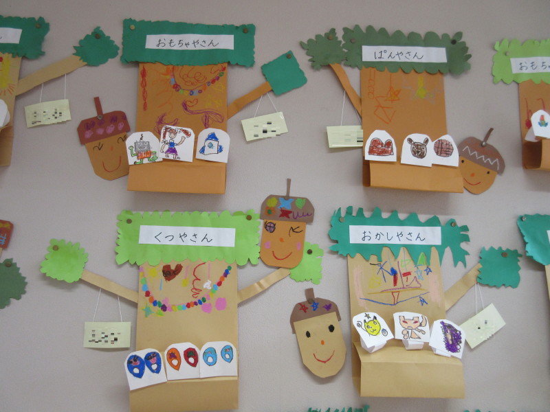 子どもたちは、自分なりに考え、様々などんぐり村のお店が完成しました(^^)☆