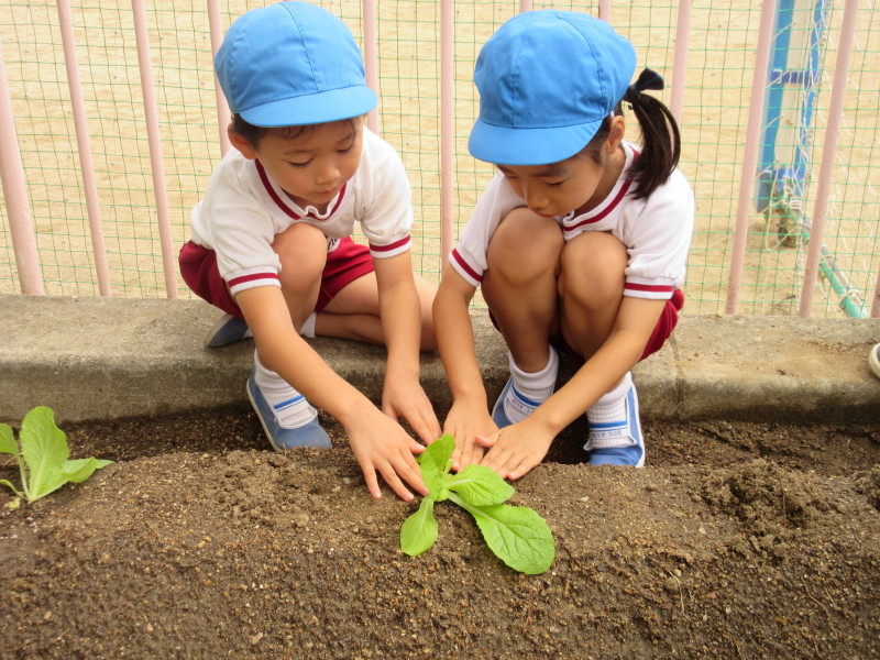 年長組で、『白菜』と『な花』を植えました♪