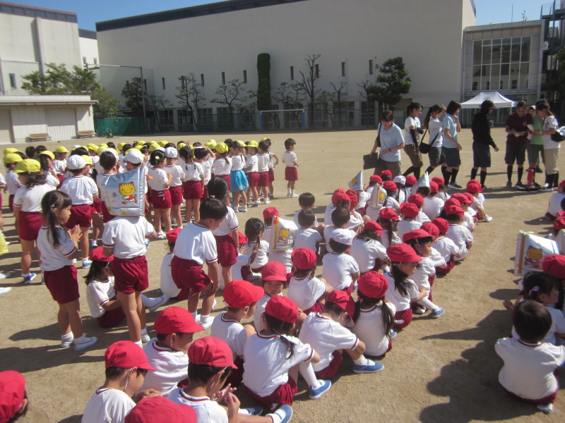 園長先生から、『地震や火事は、いつ起こるかわかりません。「お・は・し・も」を忘れずに、今日行った訓練を頭に入れて過ごすようにしましょう。』とお話がありました。