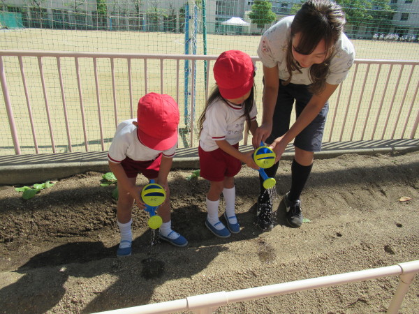 『おおきくなりますように…』と、願いを込めてみずやりをしました。