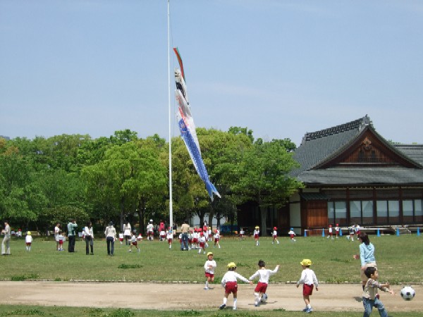 心配されたお天気も雲1つない晴天となり、大阪城の西の丸庭園まで親子で手をつなぎ、歩いて遠足に行って来ました!
