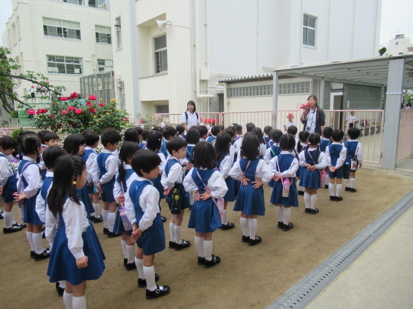 園長先生からお話をしていただいた後、事故や怪我なく行く事が出来るように皆でお祈りをしました。