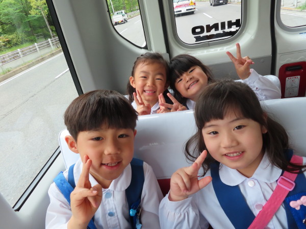バスの中では、それぞれクイズやゲームをしながら楽しく過ごしました☺