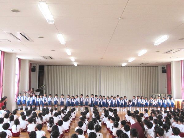 園長先生からは、今週末にある聖母祭に向けて、優しい心を持てる強い子どもになれるように…とお話がありました!!