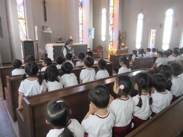 今月24日にお祝いをする、聖母祭。どうして24日なのか…のお話や、幼児期の過ごし方の大切さ、そして大人の姿勢の大切さ、「ありがとう(有難う)」の言葉の大切さ…