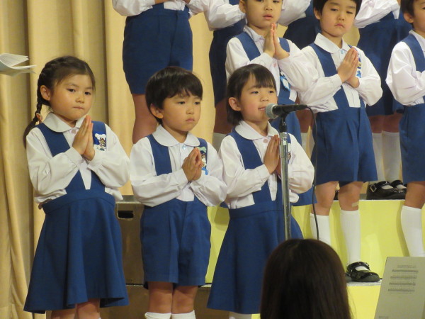 そして、「年中組でたくさんの事を学び、素敵なお兄さんお姉さんになれるようにお導きください・・・」とお祈りをお捧げしました☆