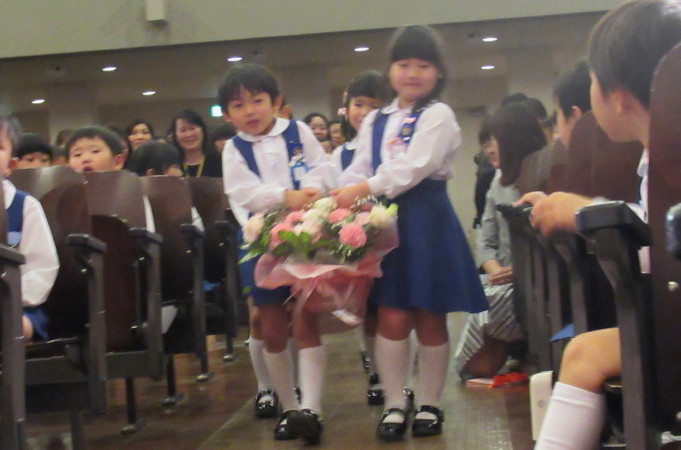 そして、各学年の代表の子どもたちが「徳の花」を捧げました。