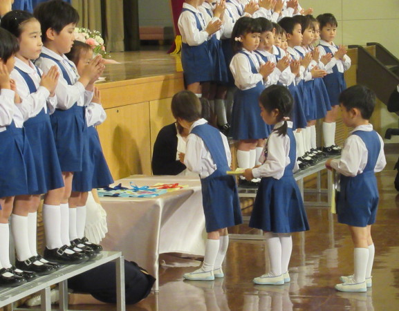 来週行われる「聖母祭」。どうして24日なのか…や、その日にむけて取り組んでいる「徳の花」についてのお話から園長先生の講話が始まりました。