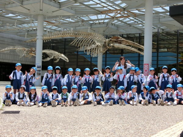 クジラの骨の前で集合写真を撮って、植物園でお弁当を食べました。