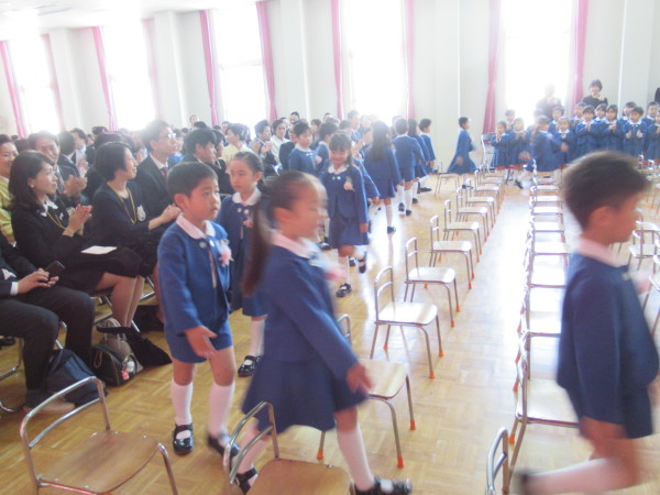 ピアノに合わせてリズムよく行進し、緊張の中にも元気よく入場してきた子どもたち。