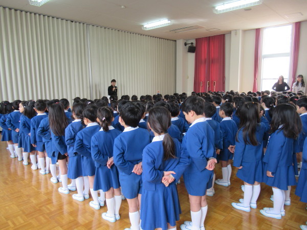 修了式の始めに、いつも見守り、導いてくださった神様に感謝の気持ちを込めてお祈りをお捧げしました。