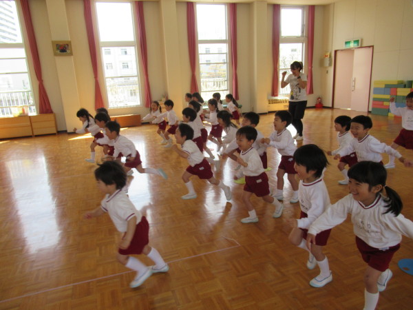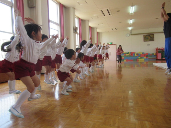 楽しいだけでなく、「足はしっかり揃えて!」「手をピンと伸ばして!」と、体の隅々まで動かします。