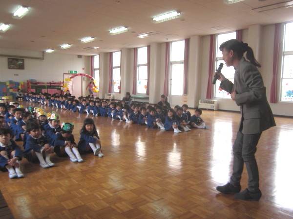 クラスに入りみんなが揃うと、遊戯室に集まって始業式が始まりました。