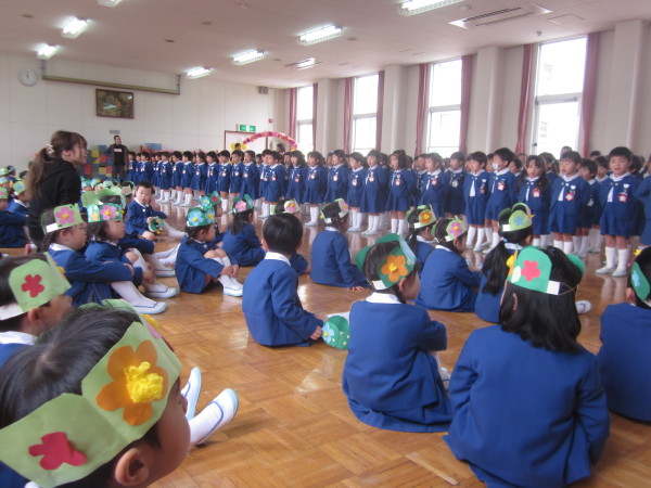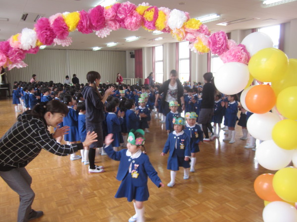 園長先生から、「これからいろんな行事があります。どんなことにも“やるぞ!”の気持ちで頑張りましょう。そして、来週から幼稚園に入ってくる年少組さんに、優しくして、助けてあげてくださいね。クラスのお友だちや他のたくさんのお友だちとも仲良く遊んで、楽しくすごしましょうね。」とお話をいただきました。