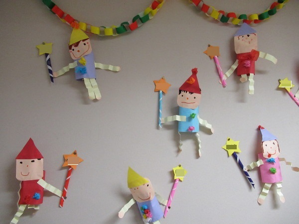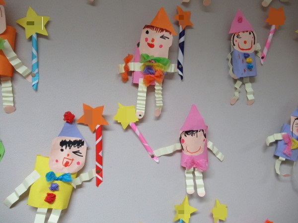 筒状にした体に、顔、足、手や帽子を付け、小人さんの完成です(^0^)