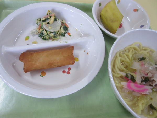 カブは、今日の給食“ほうれん草の和えもの”にいれていただき、美味しく食べることができました!!!