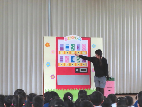 最後は、保育者からのプレゼント「お楽しみ自動販売機」のパネルシアターです。
