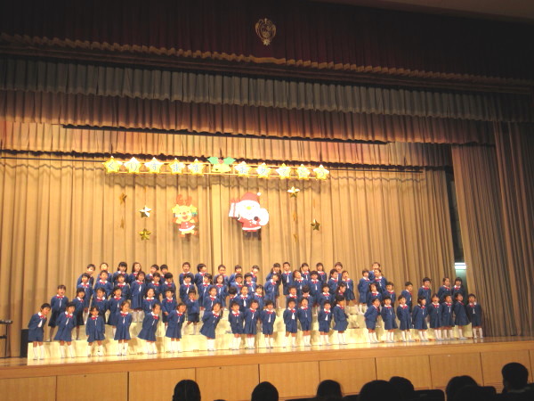 年中組は、歌「クリスマスがやってくる」、鍵盤ハーモニカ奏「ダンス」、そして、「レッツゴー!いいことあるさ」の合奏をしました。