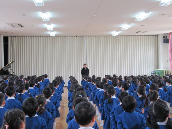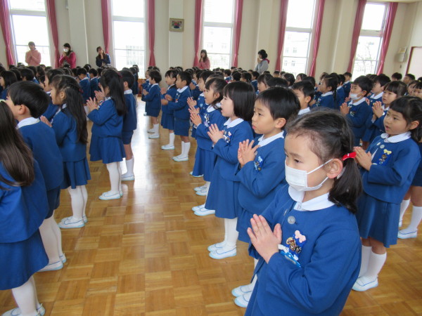 園長先生からは、「世界中には、毎日を過ごす中で困ったり辛い思いをしたりしている子どもたちがたくさんいます。その子どもたちの力に少しでもなれるように、献金など自分たちのできることをしましょう。」というお話や、「冬休みの間、安全に、そして規則正しい毎日を過ごすことができるように、お休み中のお約束を決めましょうね。」というお話もいただきました。